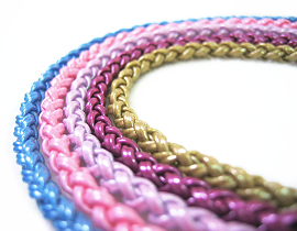 商品顏色:仿皮繩扁形 (共有晶透金、葡萄、藍、紫蘿蘭、粉五種顏色)。
